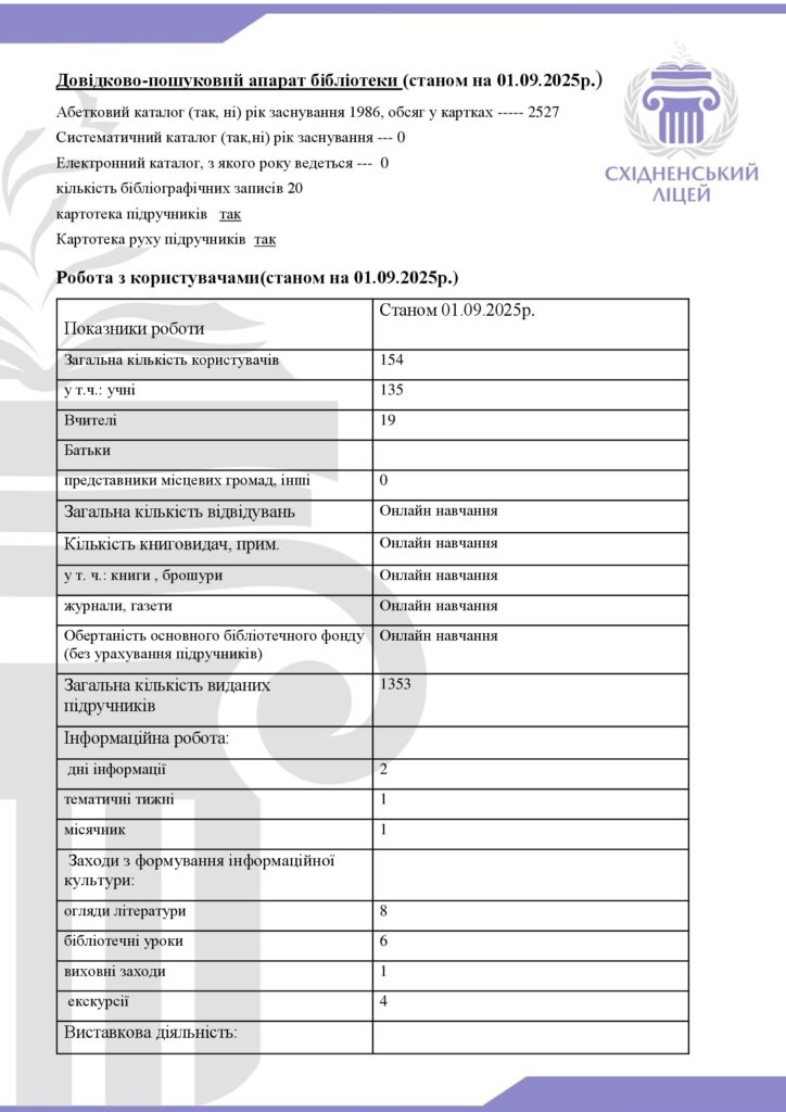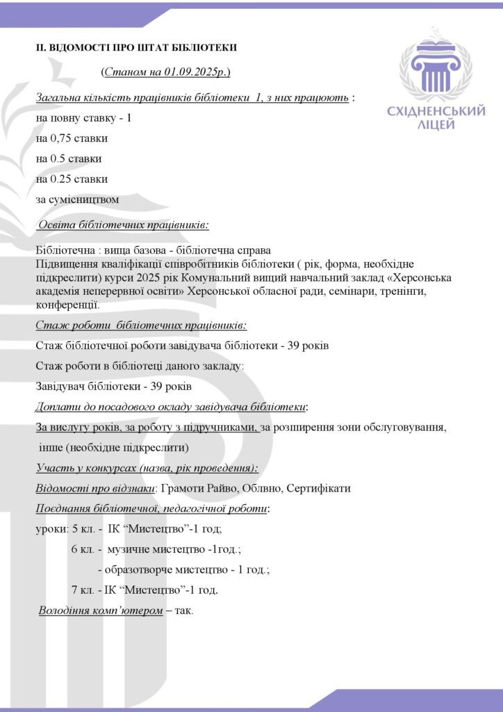 Інформаційне забезпечення навчального процесу вийшло за межі охоплення шкільною бібліотекою, і хоча учні мають великі можливості у користуванні Інтернетом, на мою думку, ніщо не може замінити живого спілкування дитини з книгою.