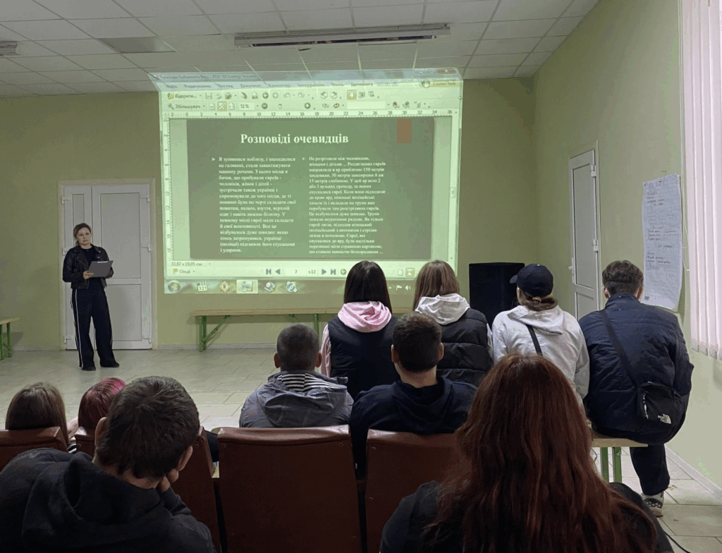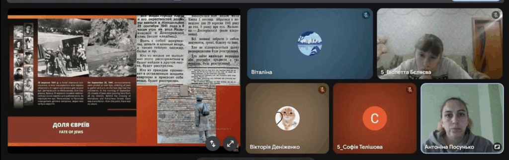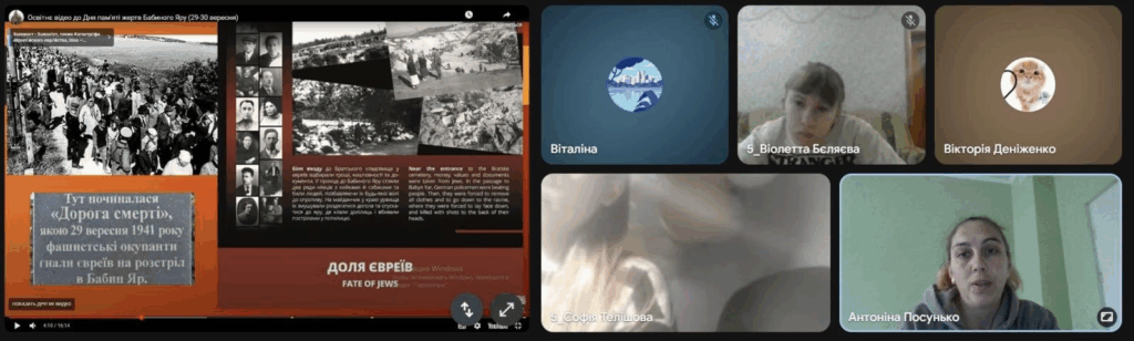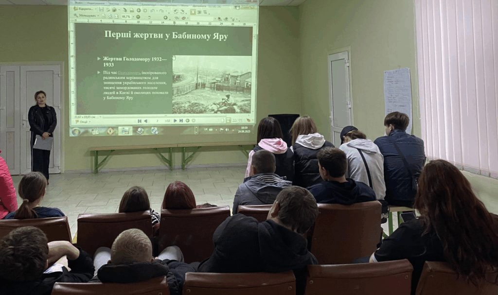 У нашому ліцеї було проведено заходи з метою вшанування пам’яті жертв трагедії Бабиного Яру: учні переглянули уривки хронологічного фільму, обговорили події та їхні наслідки. Про Бабин Яр говорили також на ранкових зустрічах і годинах спілкування.