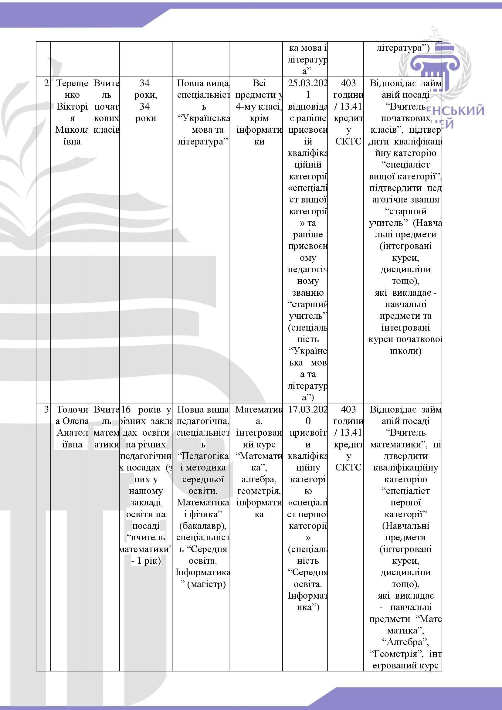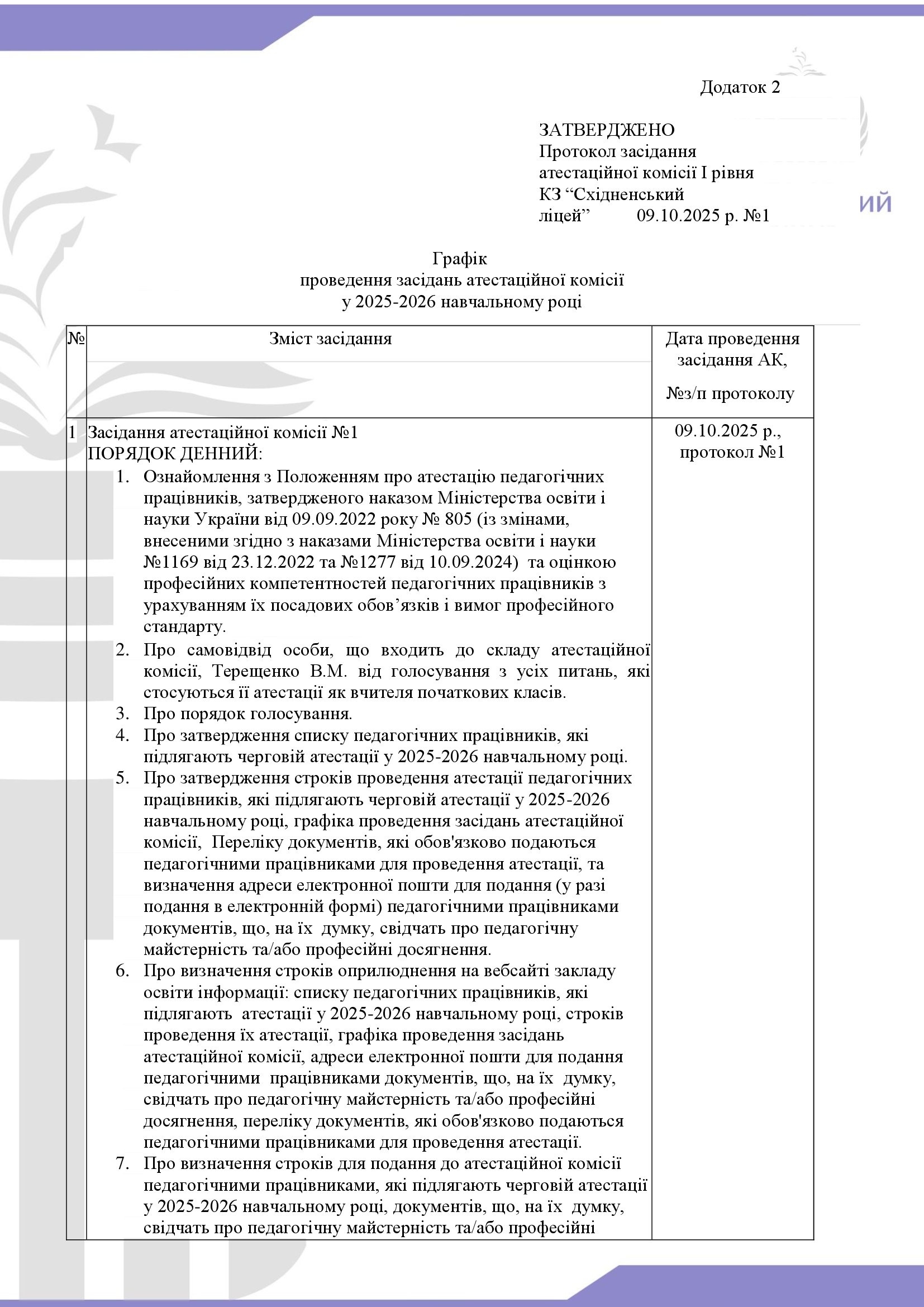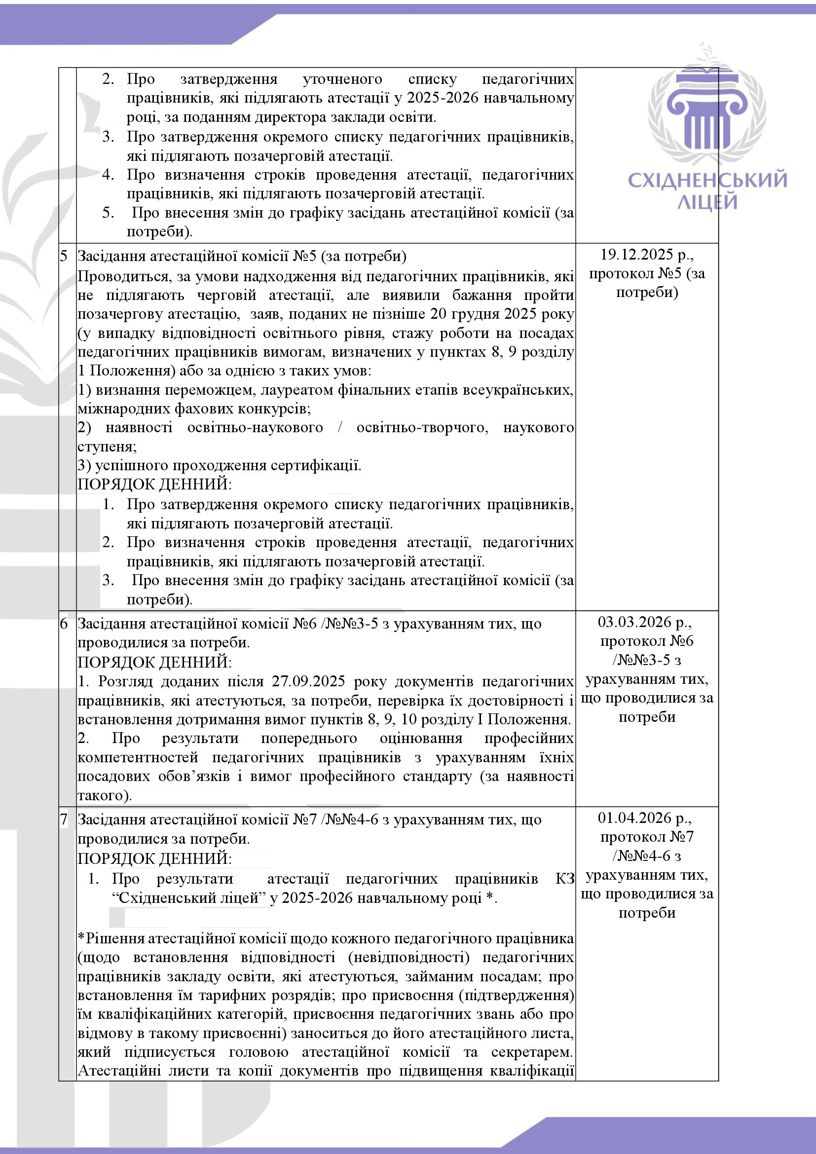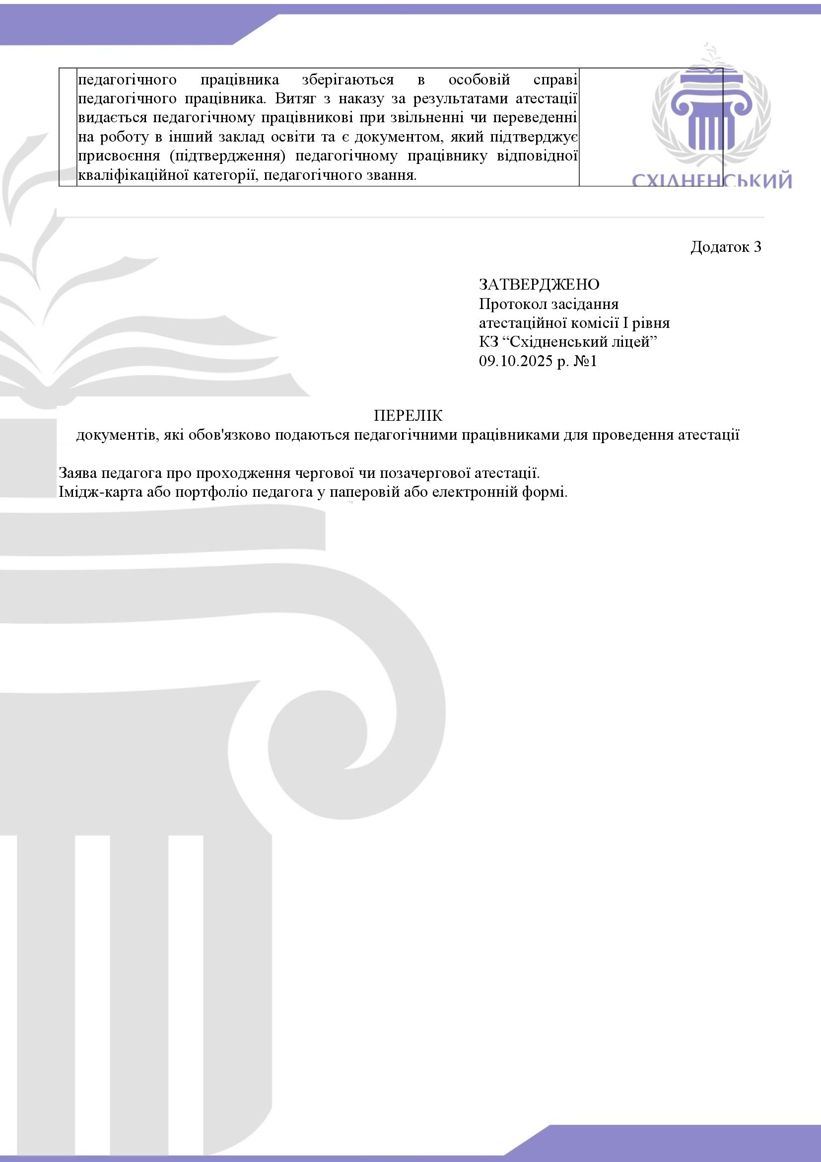 Список педагогічних працівників, які підлягають черговій атестації у 2025-2026 навчальному році